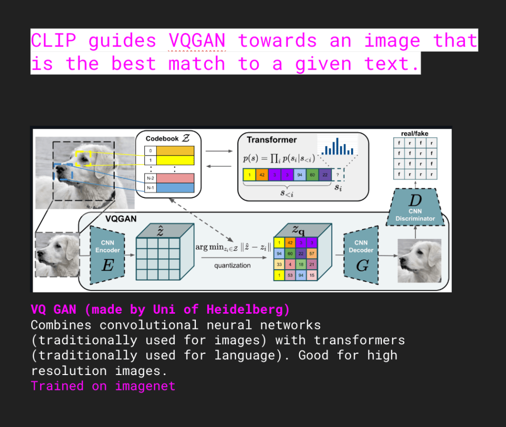 To create their ‘dream transmission’ final pieces, we explored some visual tools for machine learning using the brilliant community led pollinations platform, which curates the latest open source models via a simple to use interface for beginners. We looked at the history of imagenet and the problematic use of datasets and bias – and considered projects around resistance and reclaiming autonomy. How can we use AI to create alternative worlds and narratives, what do you want to see? What are the limitations of text to image methodologies? We considered the aesthetics and dominance of certain visual ML models such as CLIP, Dalle and VQGAN, looking at their architectural structures and the creative debates around their use.