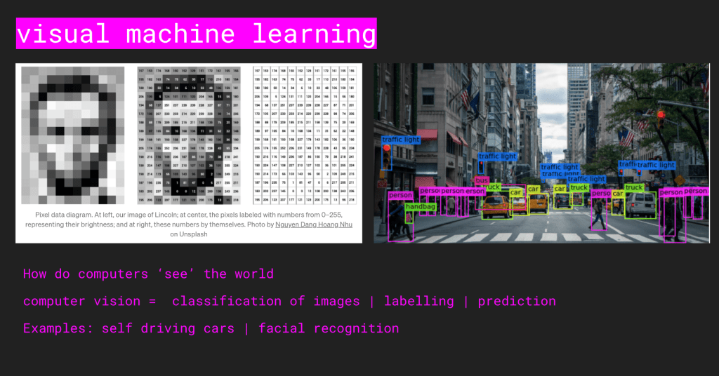 We began by looking at broad technical and historical developments in the AI field, looking at exactly what machine learning is, what is latent space, a neural network?what are the limits and challenges of the field for artists and the current trends and types of model we can use creatively as beginners. We discussed popular myths and fears around AI and machine learning in popular culture (bias / surveillance / automation) and how creative AI can provide a positive space for alternative narratives and realities to manifest. Check out our ML library and our online Discord community above.